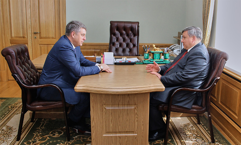 Сегодня состоялась рабочая встреча главы Брянской области Александра Богомаза с заместителем полномочного представителя Президента РФ в ЦФО Николаем Овсиенко.