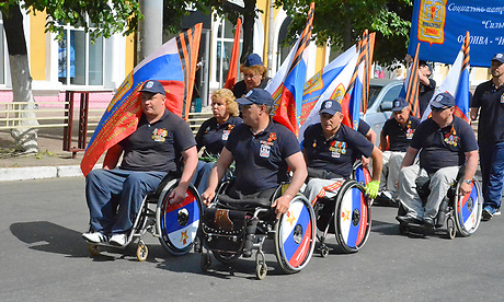 Митинг продолжили спортивные соревнования и показательные выступления спортсменов-инвалидов.