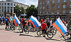 На площади Ленина стартовал молодёжный велопробег «Россия молодая». 100 участников в футболках цветов российского флага преодолели маршрут от центральной площади города до площади Воинской Славы.