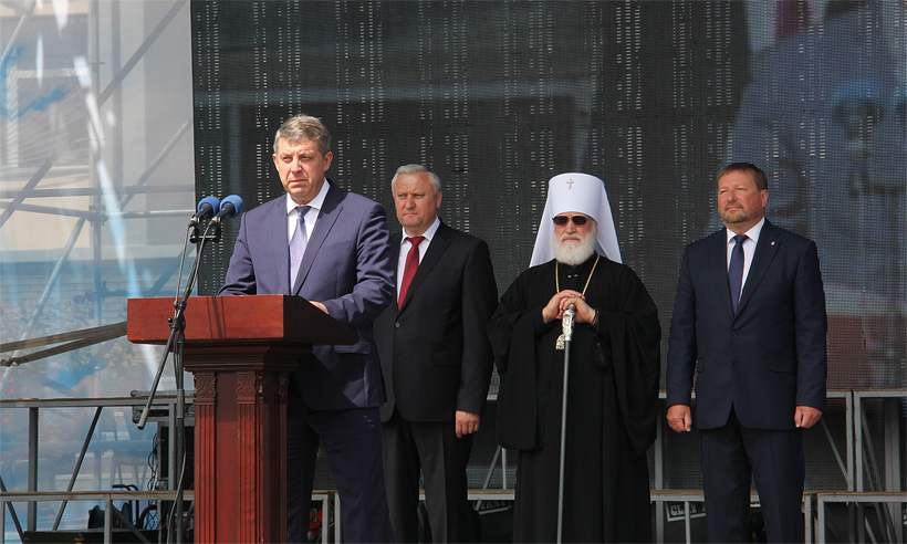 Делегация Брянской области приняла участие в Литургии, а также в возложении цветов к стеле мемориального комплекса, а затем в торжественном митинге.