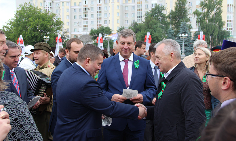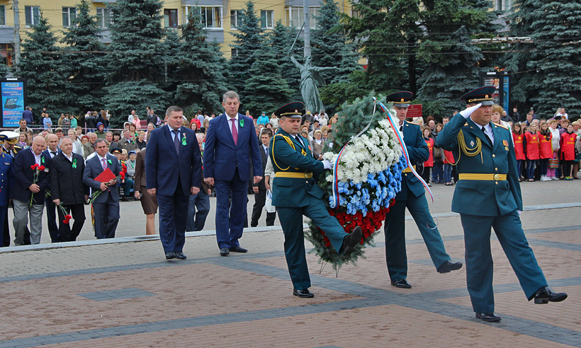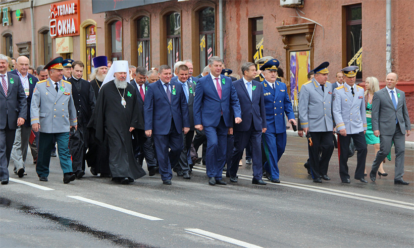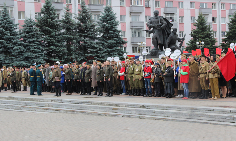 На площади Ленина к шествию присоединились и возглавили его руководители Брянской области и почетные гости региона, прибывшие из регионов Центрального федерального округа, Республики Крым Российской Федерации, Гомельской и Могилевской областей Республики Беларусь.