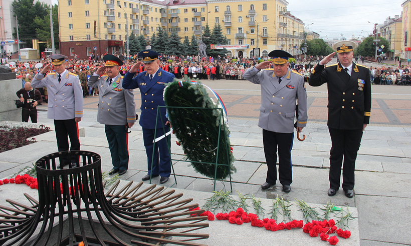 В знак памяти и благодарности воинам и партизанам, отдавшим свои жизни в борьбе с фашистскими захватчиками в годы Великой Отечественной войны представители официальной делегации во главе с Александром Богомазом возложили венки и цветы к Вечному огню памяти народной.