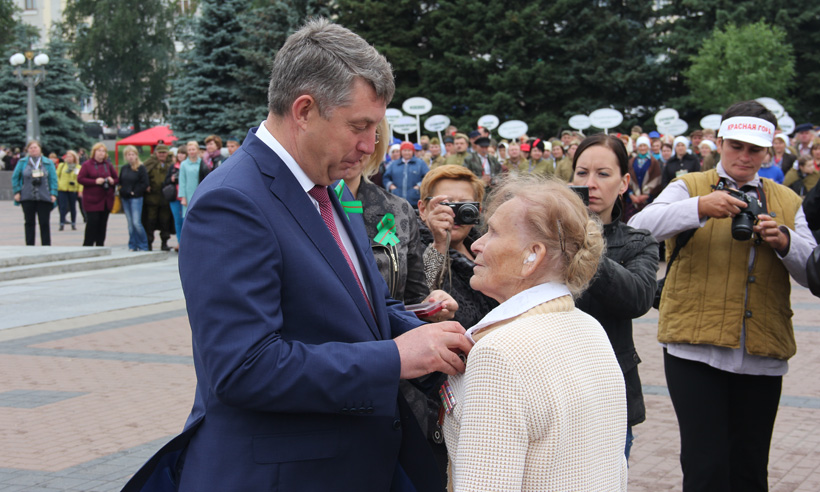 Капсулу с землей из города-героя Волгограда приняли Глава региона Александр Васильевич Богомаз, участник партизанского движения на Брянщине, ветеран Великой Отечественной войны 1941—1945 гг., участник взятия Берлина Николай Григорьевич Добродеев и воспитанник кадетского корпуса им. В. Шкурного Иван Подколодный.