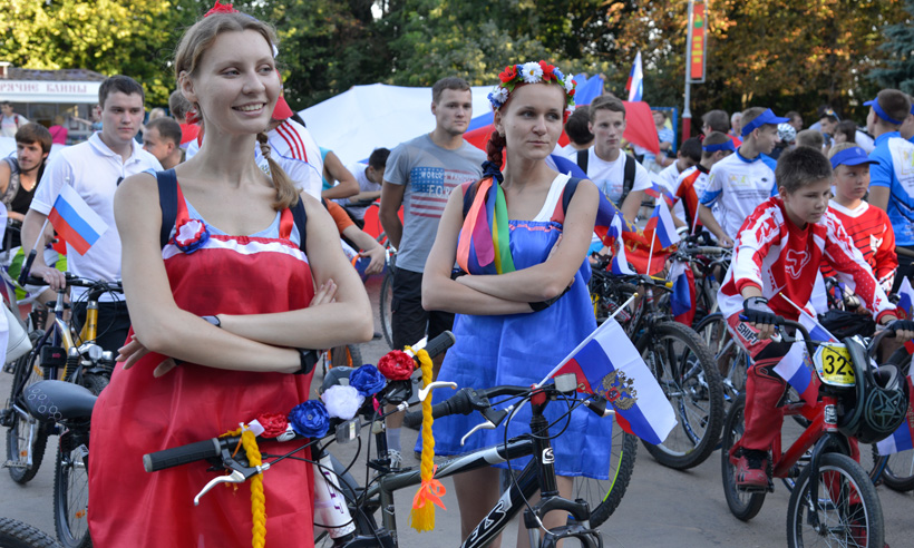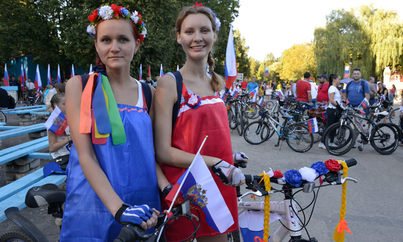 За лучшее украшение личного велосипеда в честь Дня флага Российской Федерации победители получили призы, главный приз — планшет — достался Ирине Белашовой и Евгении Фоминой.
