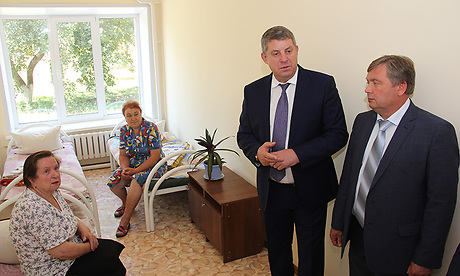 Сегодня глава Брянской области Александр Богомаз и председатель Брянской областной Думы Владимир Попков оценили условия в ряде учреждений социальной сферы Брянщины. Первым из посещенных объектов стало государственное бюджетное стационарное учреждение социального обслуживания населения «Климовский психоневрологический интернат» в селе Чуровичи Климовского района.