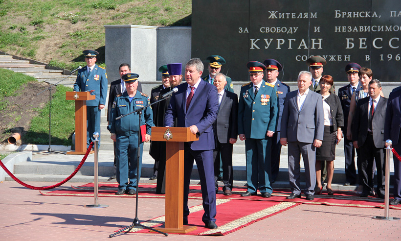 Грамоту Президента Российской Федерации огласил член военной группы Геральдического совета при Президенте Российской Федерации, герольдмейстер МЧС России полковник Александр Ефимов. Вручил знамя начальнику Главного управления МЧС России по Брянской области Вадиму Уваркину заместитель начальника Центрального регионального центра МЧС России Андрей Лутошкин. Также управлению были вручены сертификаты на аварийно-спасательный автомобиль и на специализированный мобильный комплекс для мониторинга и ведения реабилитационных работ на радиоактивно загрязненных территориях и объектах.