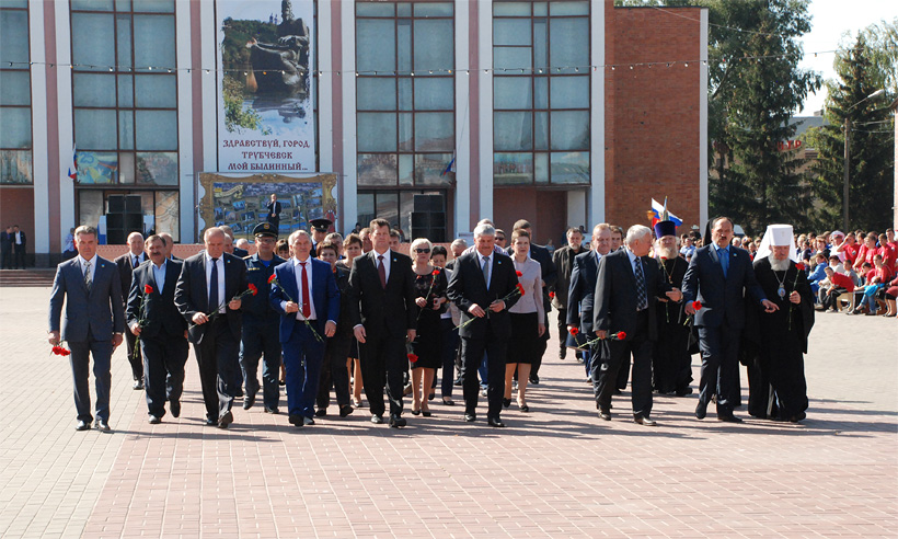 Среди гостей праздника — главный федеральный инспектор по Брянской области Леонид Соломатин, заместитель Губернатора Брянской области Юрий Мокренко, заместитель председателя Брянской областной Думы Анатолий Бугаев, митрополит Брянский и Севский Александр и епископ Клинцовский и Трубчевский Владимир, глава Трубчевского района Сергей Ященко, глава администрации района Игорь Обыденнов, глава Трубчевска Николай Данченко.