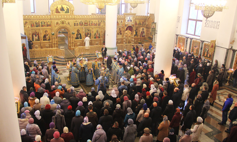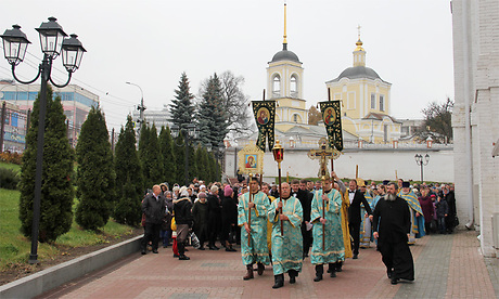 Праздничную литургию совершил митрополит Брянский и Севский Александр. Участники богослужения прошли крестным ходом вокруг храма.