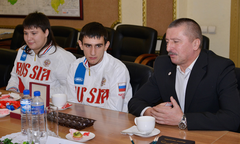 Пообщаться с руководством региона пришли молодые спортсмены: Александр Хрупин — мастер спорта России международного класса, серебряный призер Всемирных игр IWAS — 2015 года в толкании ядра среди лиц с поражением опорно-двигательного аппарата; Светлана Кривенок — мастер спорта России, победитель Всемирных игр IWAS — 2015 года в толкании ядра среди лиц с поражением опорно-двигательного аппарата; Владислав Фролов — мастер спорта России, победитель Всемирных игр IWAS — 2015 года в толкании ядра и клаба среди лиц с поражением опорно-двигательного аппарата; Артем Калащян — мастер спорта России, победитель Всемирных игр IWAS — 2015 года в беге на 200 м., серебряная медаль — в беге на 100 м. и серебряная медаль в эстафете 4 * 100 м. среди лиц с поражением опорно-двигательного аппарата, а также тренер Михаил Сумичев.
