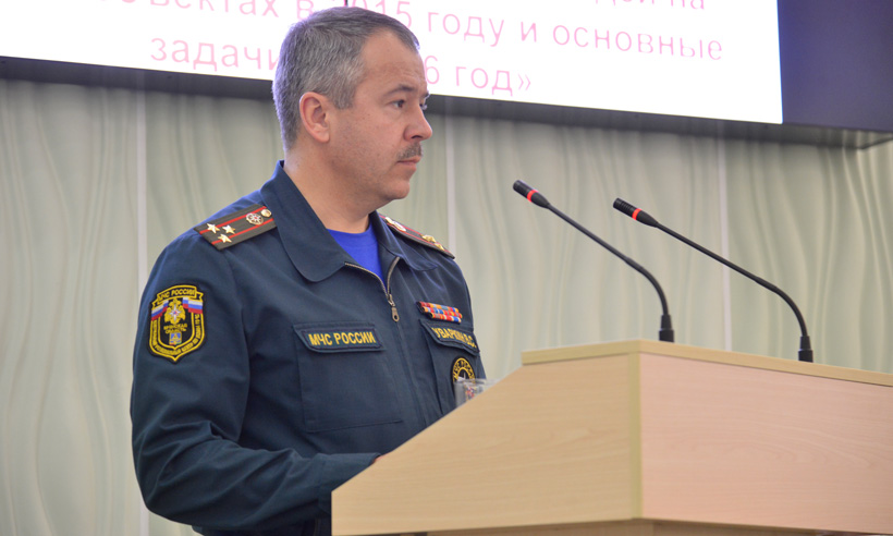 С докладом об итогах деятельности органов управления и сил территориальной подсистемы РСЧС Брянской области по выполнению мероприятий гражданской обороны, защиты населения и территорий от чрезвычайных ситуаций природного и техногенного характера, обеспечения пожарной безопасности и безопасности на водных объектах в 2015 году и основных задачах на 2016 год выступил начальник Главного управления МЧС России по Брянской области Вадим Уваркин.