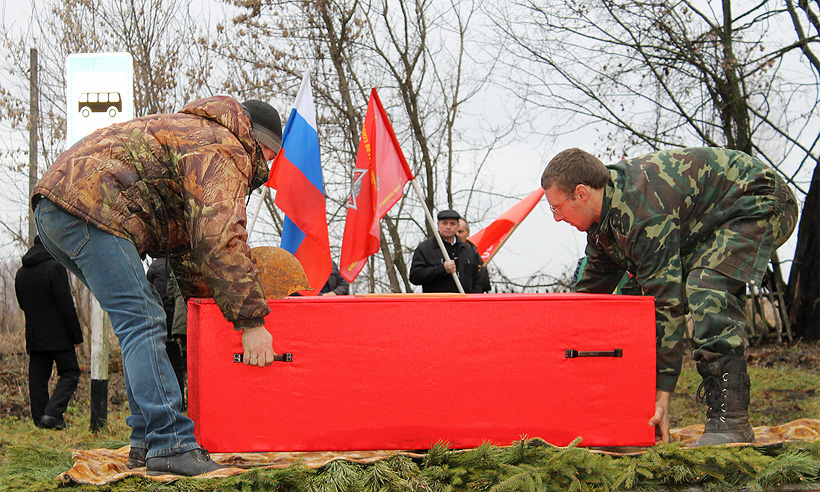 В течение года, при проведении поисковых работ по увековечиванию памяти погибших при защите Отечества в рамках Всероссийской «Вахты Памяти — 2015», поисковым движением «Отечество» на территории Погарского муниципального района были обнаружены останки еще нескольких красноармейцев. Сегодня под залпы оружейного салюта останки были преданы земле.