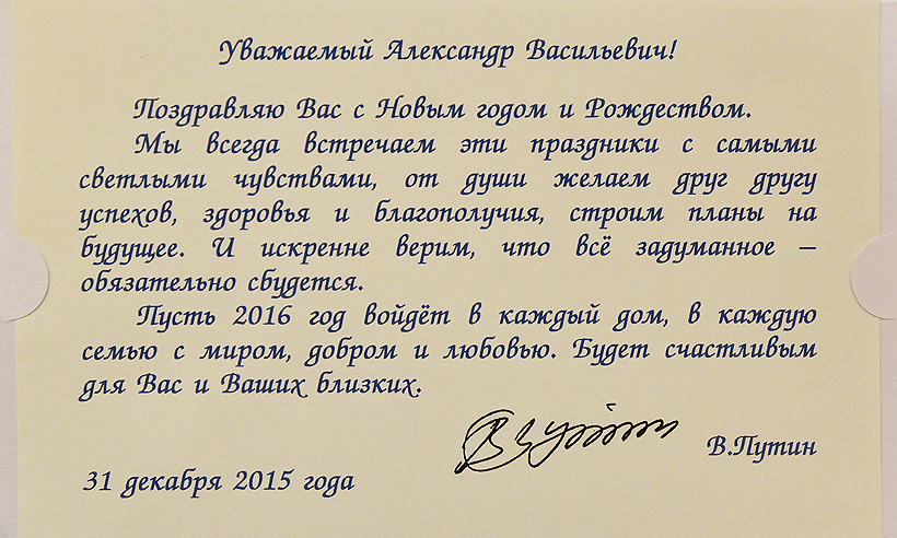 На имя Губернатора Брянской области Александра Богомаза поступило поздравление с Новым годом и Рождеством от Президента России Владимира Путина. В тексте поздравления, в частности, говорится: