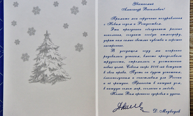 В адрес Губернатора Брянской области Александра Богомаза поступило поздравление с Новым годом и Рождеством от Председателя Правительства РФ Дмитрия Медведева. В тексте поздравления, в частности, говорится: