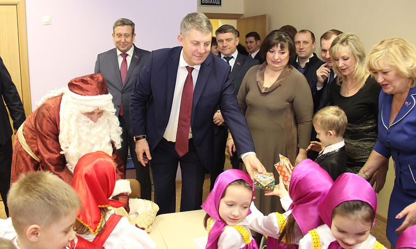 29 декабря Губернатор Брянской области Александр Богомаз принял участие в открытии новых дошкольных образовательных учреждений. Первый из них — детский сад № 22 «Лесная сказка», расположенный в поселке Мичуринский. В мероприятии также приняли участие председатель Брянской областной Думы Владимир Попков, руководители города Брянска, депутаты областной Думы.