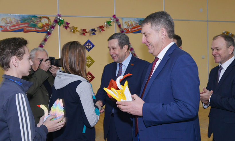 30 декабря Губернатор Брянской области Александр Богомаз, председатель областной Думы Владимир Попков, заместитель Губернатора Николай Щеглов, директор департамента здравоохранения Брянской области Андрей Бардуков, главный врач областной детской больницы Виктор Алекса поздравили детей и медперсонал Брянской областной детской больницы с наступающими новогодними и рождественскими праздниками.