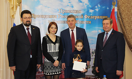 30 декабря в приемной Президента Российской Федерации В. В. Путина в Брянской области состоялось вручение поздравления от Президента брянской школьнице Юлии Мишиной.