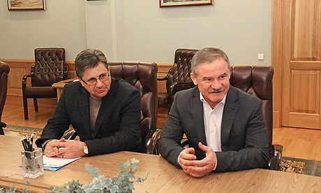 Сегодня в Правительстве Брянской области состоялась рабочая встреча Губернатора Брянской области Александра Богомаза с новым генеральным директором одного из крупных промышленных предприятий региона — ОАО «Новозыбковский машиностроительный завод» Олегом Шевченко. Представил главе региона нового руководителя завода член правления ООО УК «РэйлТрансХолдинг» Александр Коленков. Также во встрече принял участие заместитель Губернатора Михаил Кобозев.