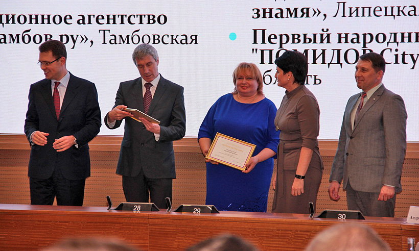 В Москве, в рамках совместного заседания Совета при полномочном представителе Президента Российской Федерации в Центральном федеральном округе и Общественной палаты ЦФО состоялось подведение итогов и торжественное награждение победителей конкурса Общественной палаты Центрального федерального округа среди средств массовой информации на лучшее освещение общественных проектов и гражданских инициатив. К участию в конкурсе были представлены 282 проекта из 86 средств массовой информации регионов ЦФО. Награды были присуждены в пяти номинациях: «Печатное СМИ», «ТВ», «Интернет-СМИ», «Большой проект маленького СМИ» и «Великая Победа».