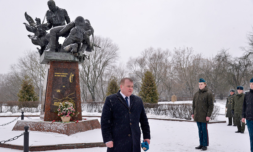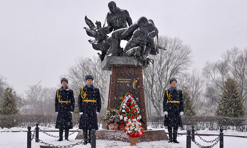 В завершение митинга собравшиеся почтили память погибших бойцов минутой молчания и возложили цветы к подножию мемориала.