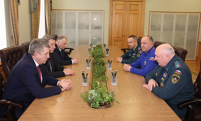 4 марта в Правительстве Брянской области состоялась рабочая встреча Губернатора Брянской области Александра Богомаза с заместителем Министра МЧС России Леонидом Беляевым и начальником Национального центра управления в кризисных ситуациях Виктором Яцуценко. Также участие во встрече приняли председатель Брянской областной Думы Владимир Попков, начальник Главного управления МЧС России по Брянской области Вадим Уваркин, заместитель Губернатора Сергей Сергеев.