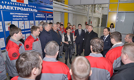В свою очередь полномочный представитель Президента отметил, что сегодня перед заводом стоят задачи обеспечить мощные темпы развития производства новых типов высокотехнологичных, наукоемких соединителей на основе внедрения эффективных энергосберегающих технологий и современного оборудования.