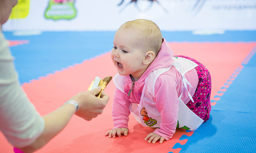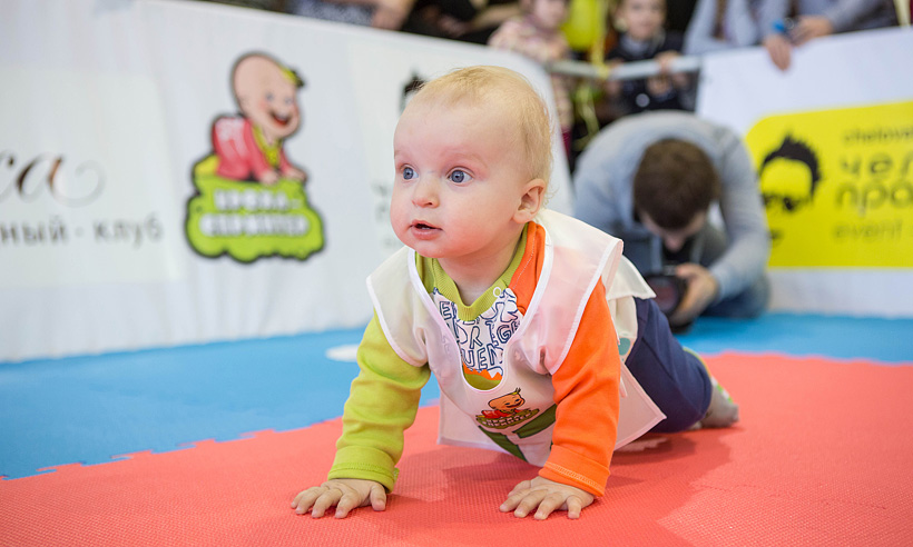 Но самыми важными действующими лицами, безусловно, стали крохи-спринтеры. Малышам в возрасте от 6 до 10 месяцев предстояло ползком преодолеть дистанцию 5 метров. Чтобы маленькие участники чувствовали себя наиболее комфортно, они смогли заранее изучить площадку предстоящего забега.