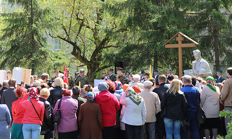 В открытии памятника приняли участие родственники погибшего солдата, представители районной администрации, поисковики, учащиеся общеобразовательных школ.