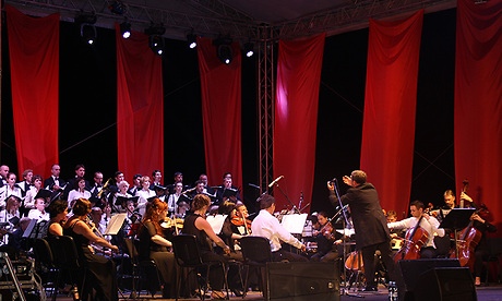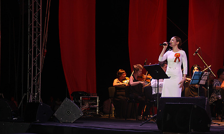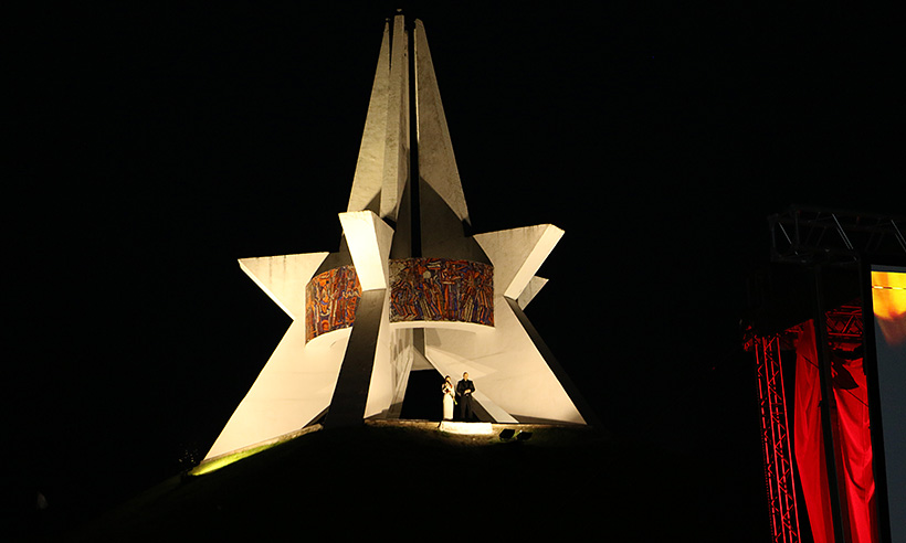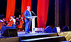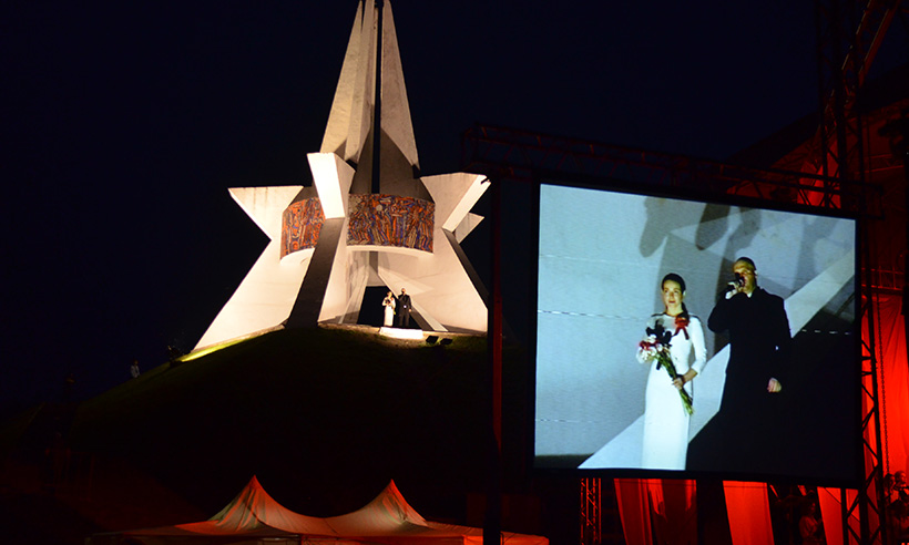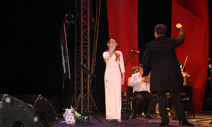 В завершение концерта все присутствующие на Кургане Бессмертия стоя хором спели гимн Брянской области «Шумел сурово Брянский лес…».