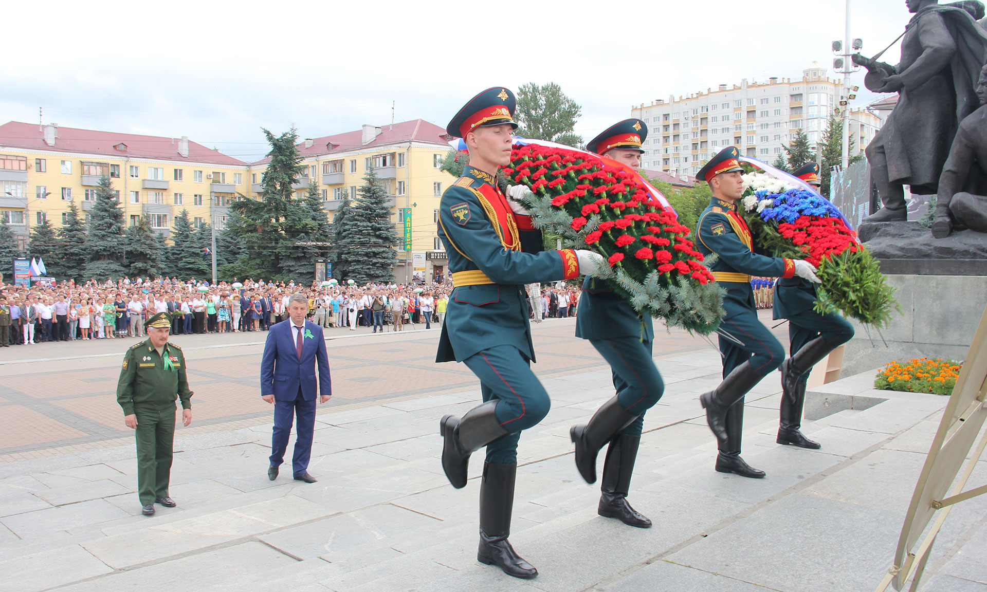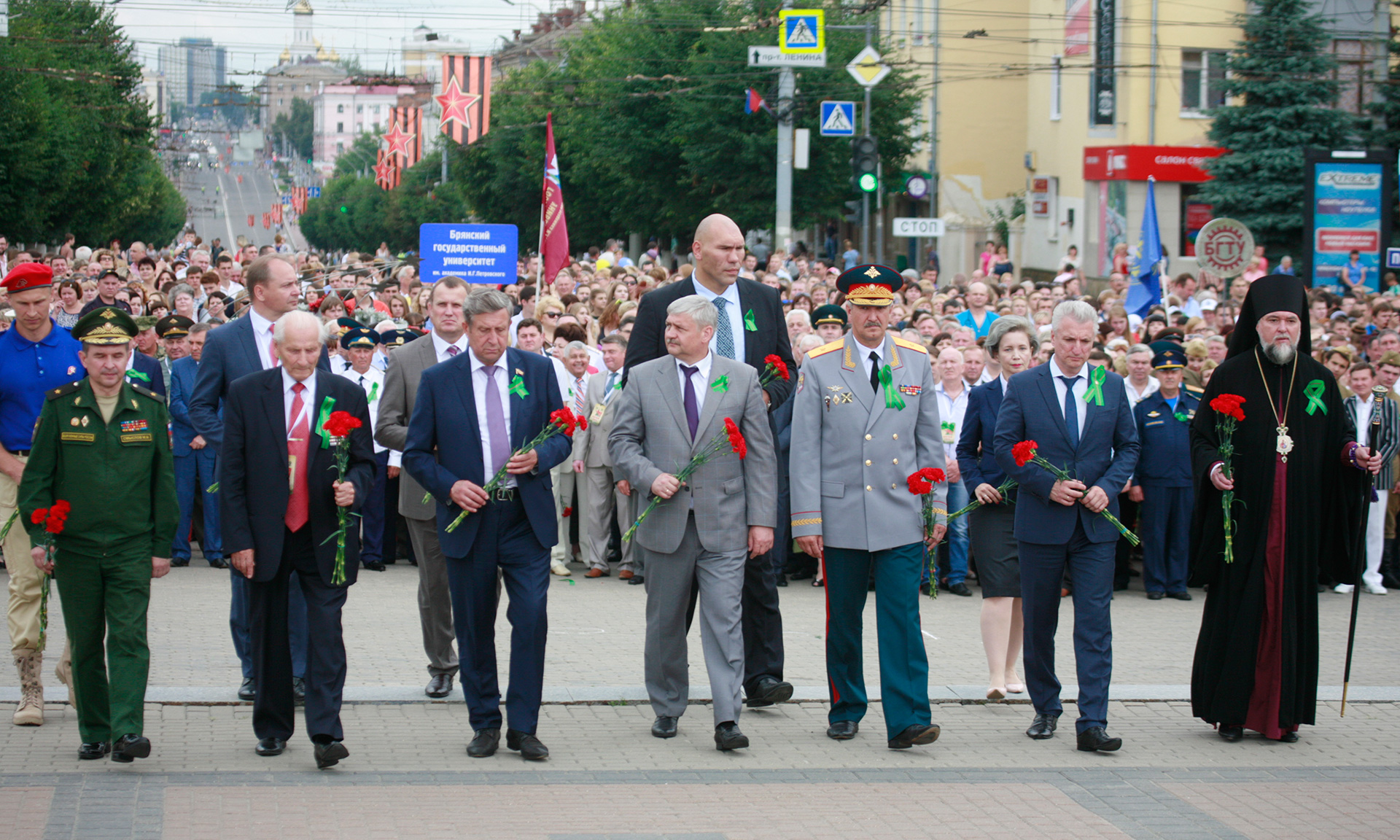 В церемонии возложения цветов к обелиску приняли участие начальник Главного управления по работе с личным составом Вооруженных Сил Российской Федерации генерал-майор Михаил Смыслов, командующий 20-й гвардейской общевойсковой Краснознаменной армией Западного военного округа Сергей Кузовлев, военный комендант города Москвы генерал-майор Евгений Селезенев, заместитель Председателя Могилевского областного исполнительного комитета Виктор Некрашевич, Председатель Могилевского областного Совета депутатов Анатолий Исайченко, заместитель председателя Правительства Орловской области по безопасности Виталий Утешев, депутат Государственной Думы ФС РФ Николай Валуев, начальник Главного штаба «Юнармии» олимпийский чемпион Дмитрий Труненков, заместитель начальника Центрального спортивного клуба Армии Анна Ильина, прокурор Брянской области Александр Войтович, председатель Брянской областной Думы Владимир Попков, главный федеральный инспектор по Брянской области Леонид Соломатин, начальник УФСБ России по Брянской области генерал-лейтенант Сергей Блинов, начальник УМВД по Брянской области генерал-майор полиции Валентин Кузьмин, руководитель следственного управления Следственного комитета РФ по Брянской области генерал-майор юстиции Игорь Литвинов, начальник Пограничного управления ФСБ России по Брянской области контр-адмирал Сергей Станкевич, начальник Главного управления МЧС России по Брянской области, полковник Вадим Уваркин, епископ Клинцовский и Трубчевский Владимир, председатель Брянского областного совета ветеранов войны, труда, Вооруженных Сил и правоохранительных органов Сергей Панков.