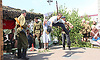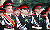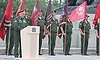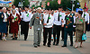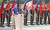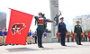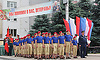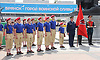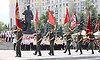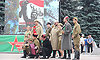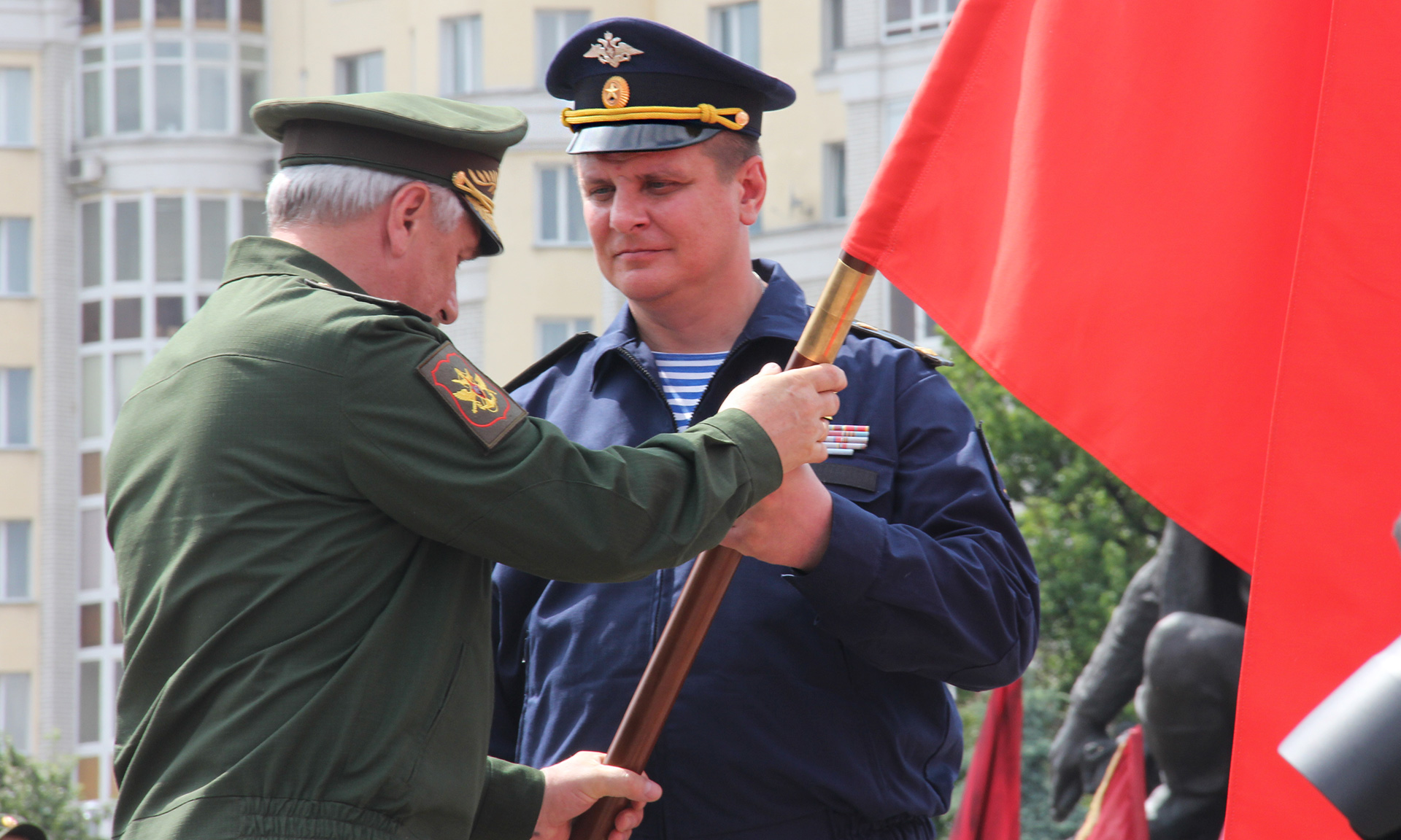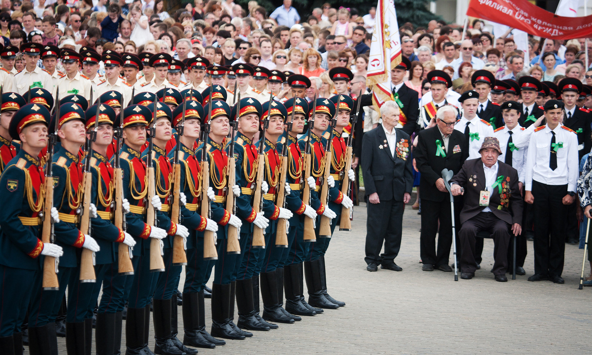 На площадь Партизан внесли копию Знамени Победы и государственный флаг Российской Федерации. 6200 партизанских отрядов, бригад и соединений добывали победу на всей территории нашей страны. И каждый имел свое красное знамя — символ мужества и непокоренности врагу. На площадь Партизан вынесли знамена партизанских отрядов России, Белоруссии, Украины. Участники партизанского движения встали под свои боевые знамена: