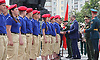 По сложившейся традиции юнармейцам были вручены значки участников движения — их вручили начальник Главного управления кадров Министерства обороны Российской Федерации генерал-полковник Виктор Горемыкин, начальник Главного управления по работе с личным составом Вооруженных Сил Российской Федерации генерал-майор Михаил Смыслов, депутат Государственной Думы ФС РФ Николай Валуев, начальник Главного штаба «Юнармии» Дмитрий Труненков, заместитель начальника Центрального спортивного клуба Армии Анна Ильина, председатель Брянского областного совета ветеранов войны, труда, Вооруженных Сил и правоохранительных органов Сергей Панков, Губернатор Брянской области Александр Богомаз.