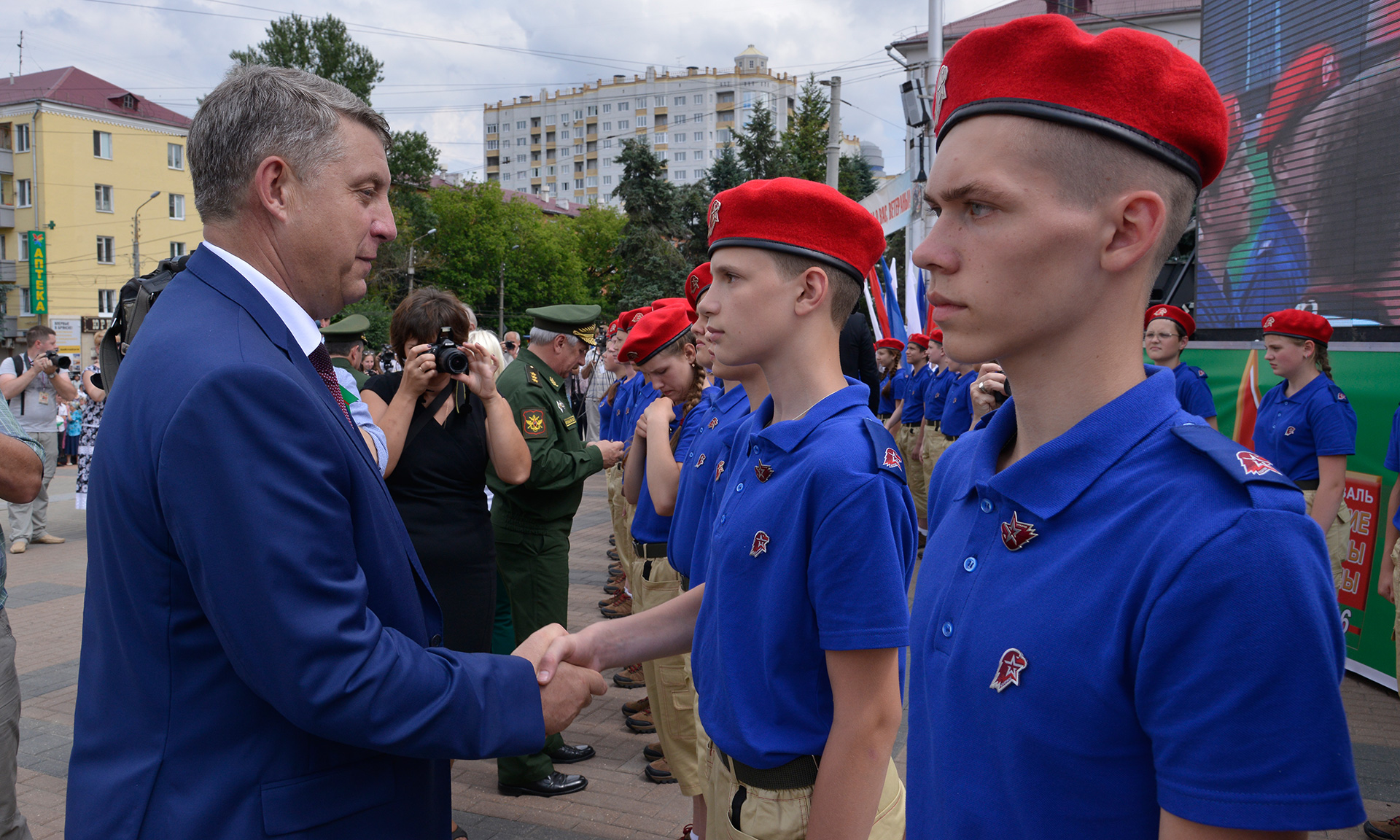 — Сегодня мы принимаем в ряды юнармейцев кадетов Брянской области. Мы становимся свидетелями преемственности поколений. Именно этим ребятам предстоит жить в нашей великой стране, управлять ею и защищать ее границы. Именно они — наследники Великой Победы, поколения победителей, а юнармейское братство станет настоящим продолжением и возрождением традиций. Именно «Юнармия» — самый главный путь к мечте и поставленным целям. Вместе мы станем большой силой и с гордостью понесем флаг нашего движения, — сказал начальник Главного штаба Юнармии, Олимпийскому чемпиону Дмитрий Труненков.