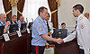 В завершение заседания замминистра вручил ведомственные награды отличившимся сотрудникам, после чего провел встречу с личным составом Управления МВД России по Брянской области.