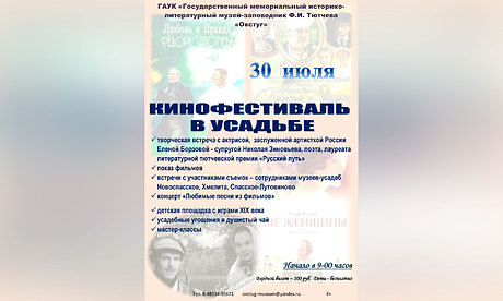 30 июля 2016 года Государственный мемориальный историко-литературный музей-заповедник Ф. И. Тютчева «Овстуг» приглашает гостей и жителей Брянской области принять участие в празднике «Кинофестиваль в усадьбе», посвященном Году российского кино.