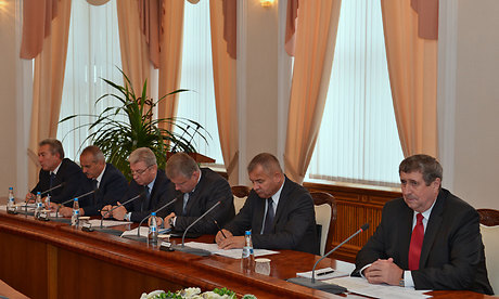 Встреча Губернатора Александра Богомаза с вице-премьером Республики Беларусь Михаилом Русым состоялась в Доме Правительства Республики Беларусь.