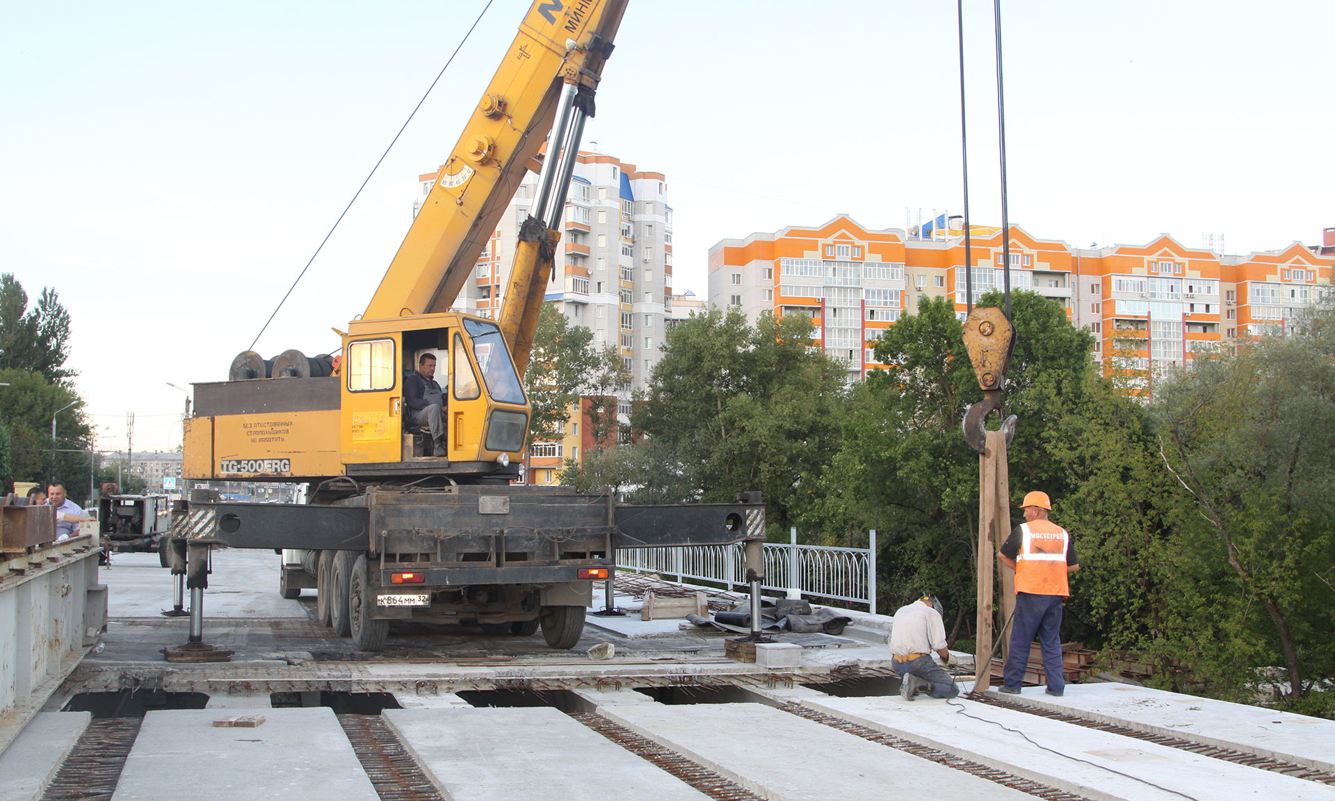 Последняя балка десятого пролетного строения уложена в среду вечером на Первомайском мосту. Заместитель Губернатора Брянской области Юрий Мокренко, глава Брянской городской администрации Александр Макаров и глава города Александр Хлиманков выразили благодарность мостостроителям за работу, которую они ведут хорошими темпами с опережением графика.