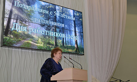 От имени ветеранов управления лесами Брянской области выступила Елена Александровна Воронина. Она поздравила всех с профессиональным праздником, пожелала счастья и новых трудовых успехов на благо брянского края.