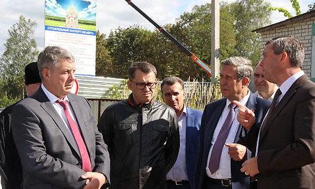 Александр Богомаз, Владимир Попков и Михаил Середа осмотрели строительную площадку, пообщались со строителями. Губернатор поблагодарил руководство подрядной организации за качественное ведение работ, а также выразил уверенность, что при таких темпах и оказании спонсорской финансовой помощи «храм откроет свои двери для прихожан уже через год».
