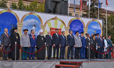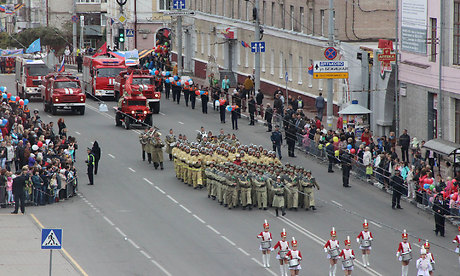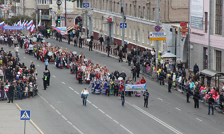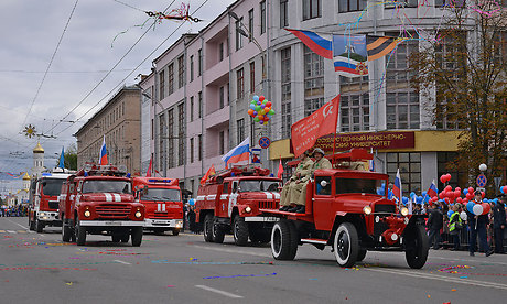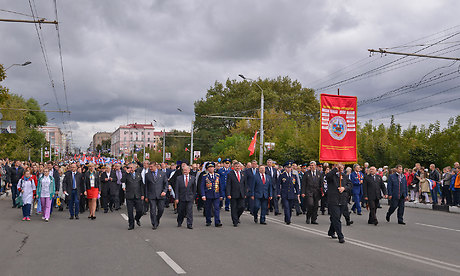 Участники праздничной колонны направляются к площади Партизан, где состоится торжественный митинг «В Брянском лесу тишина», посвященный 73-й годовщине освобождения Брянской области от немецко-фашистских захватчиков и Дню города Брянска.