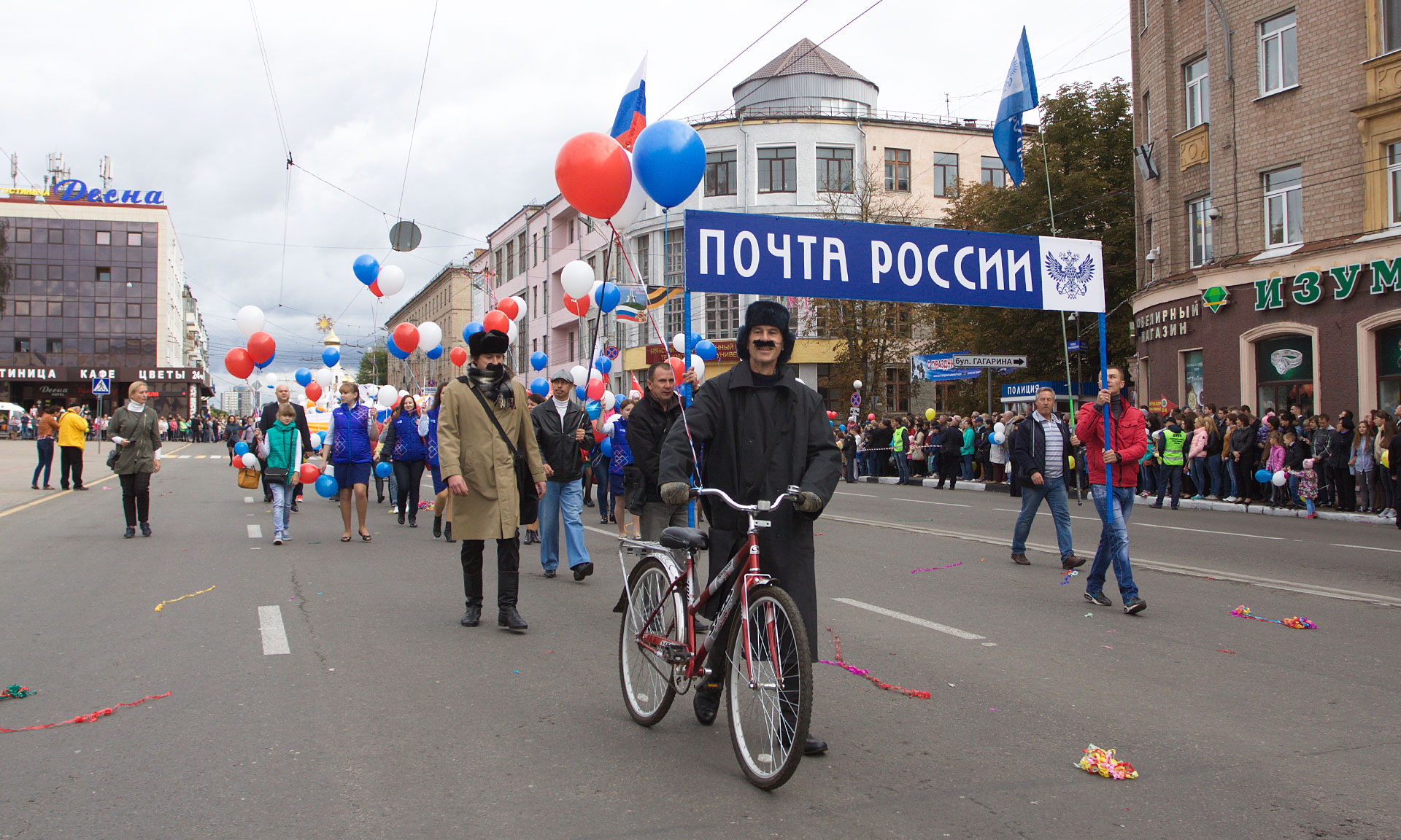 Праздничные поздравления принимают все участники шествия. Губернатору Брянской области Александру Богомазу подарили оригинальную открытку от жителей Советского района Брянска в праздничном оформлении Почты России. Вручил подарок почтальон Печкин, что стало одним из ярких моментов праздничных событий на площади Ленина.