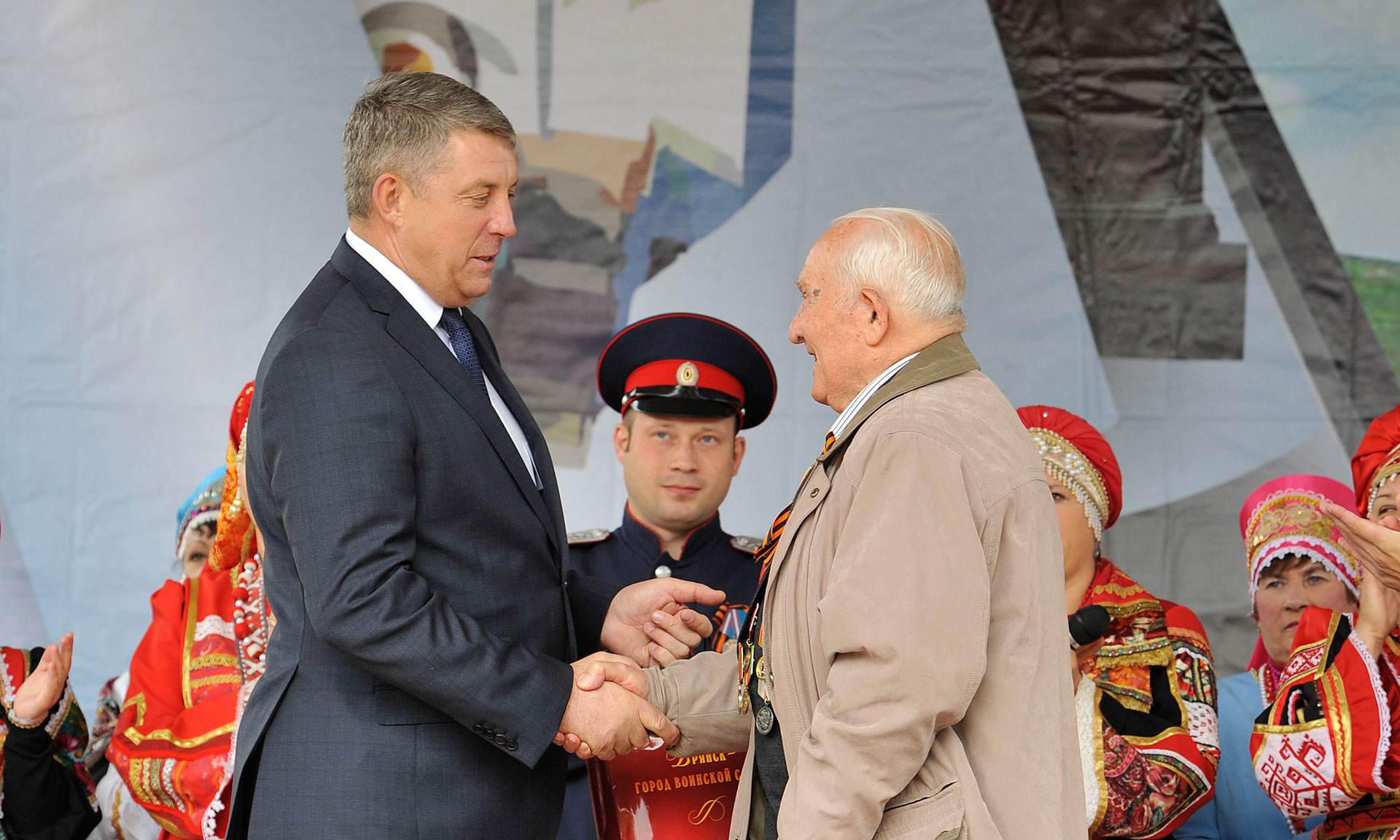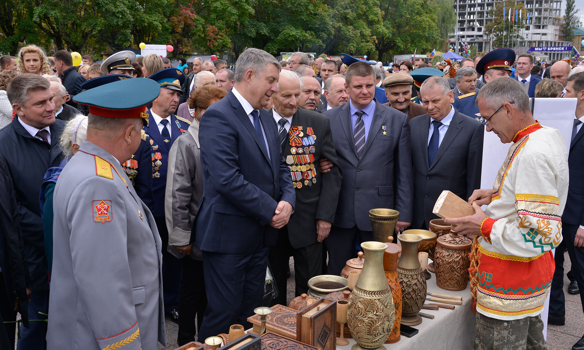 Ключевым событием стало поздравление именинников, родившихся 17 сентября. Губернатор Брянской области поздравил ветерана Великой Отечественной войны, участника Сталинградской битвы Георгия Степановича Мосина, которому исполнилось 95 лет, Наталью Скворцову и Александра Золотовицкого — они отмечают в этом году 50-летие.