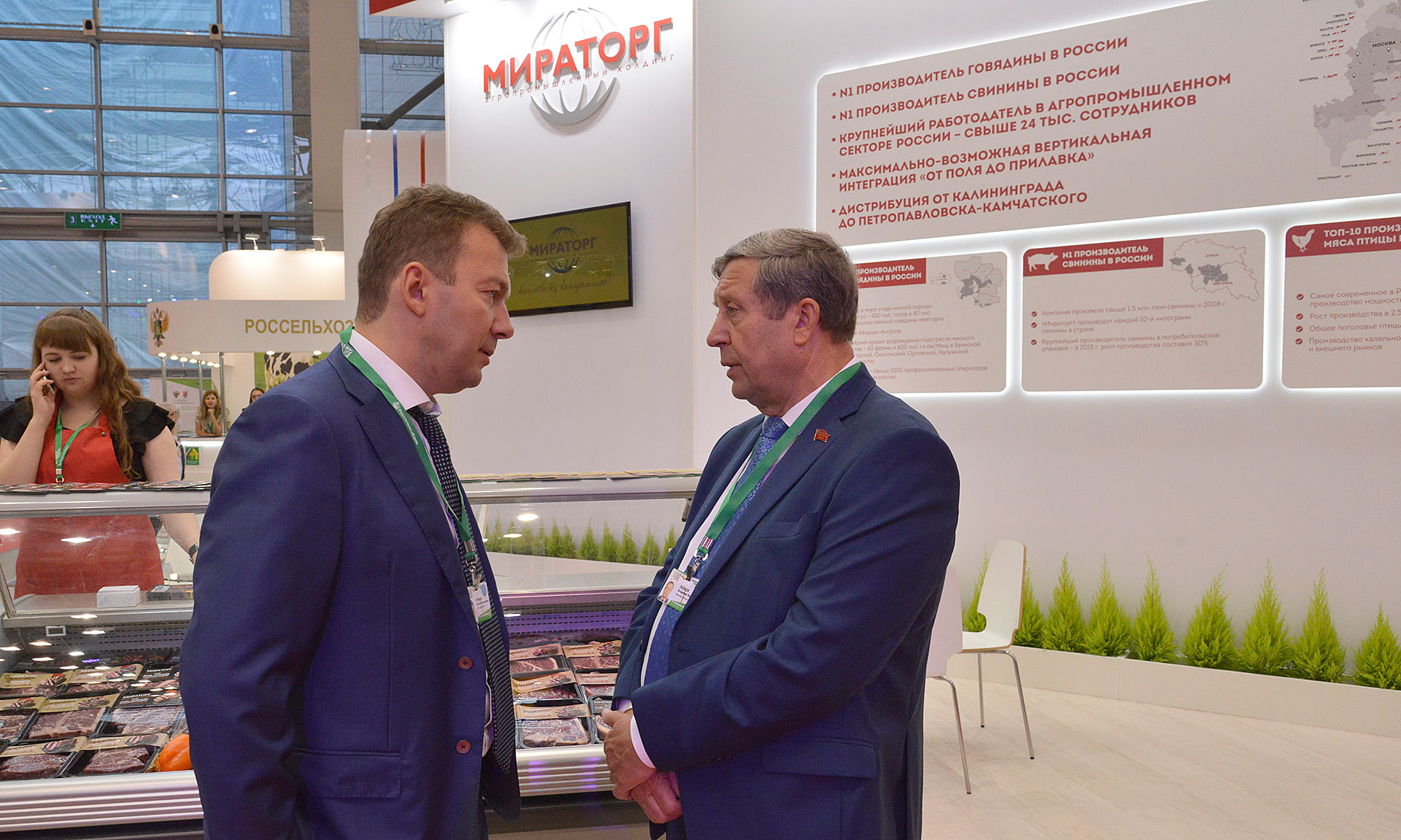 С президентом АПХ «Мираторг» Виктором Линником на площадке агропромышленного холдинга глава региона пообщался на тему создания информационного вестника о сельском хозяйстве, в котором необходимо рассказывать о новых профессиях, о том, где им обучают, об особенностях поддержки работников отрасли предприятием, об участии предприятий аграрного сектора в социальных проектах, в том числе и АПХ «Мираторг». Формат должен быть интересен как предприятиям агробизнеса, так и простым гражданам. Детали нового проекта Александр Богомаз и Виктор Линнник договорились обсудить по возвращении с выставки.