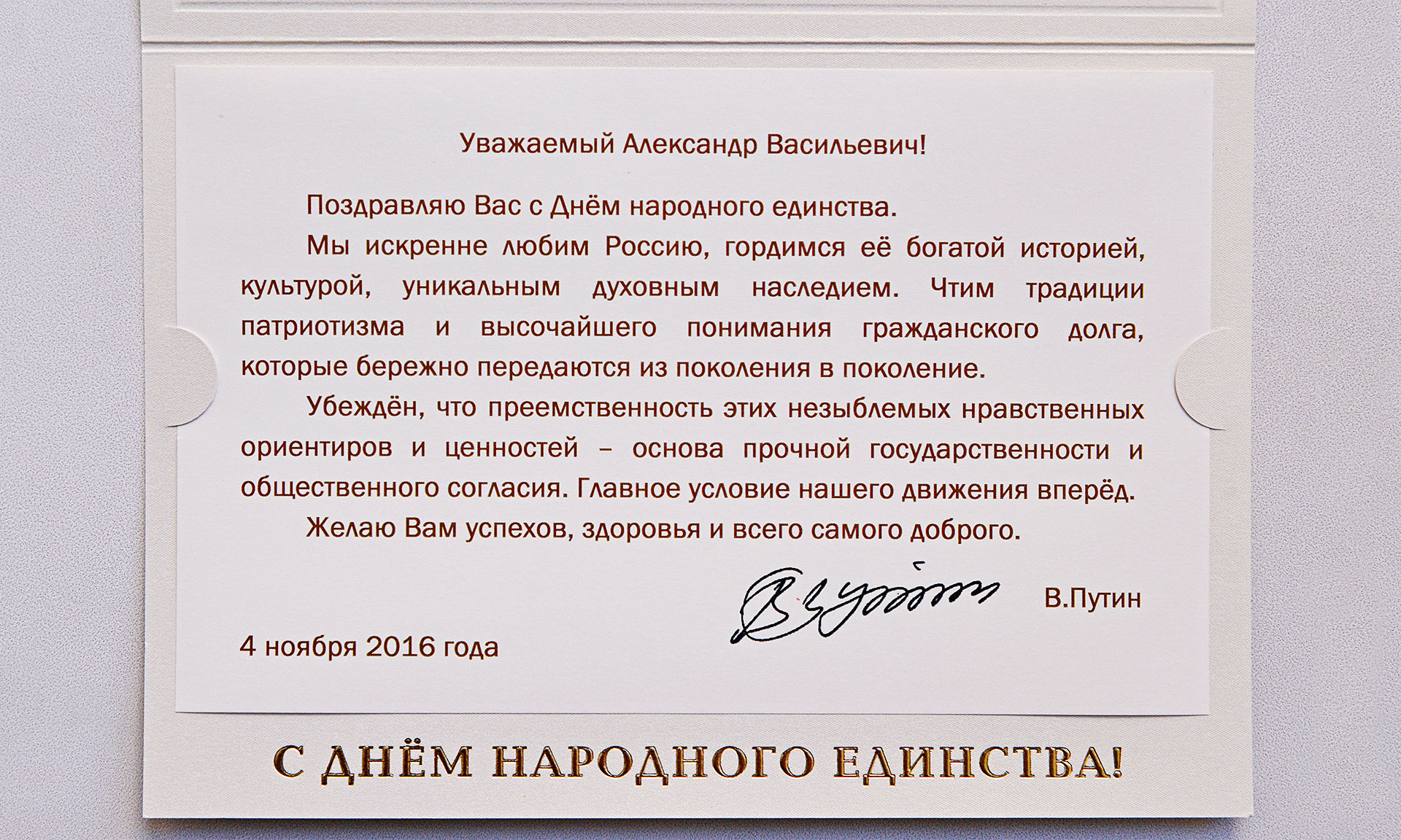 Поздравляю Вас с Днём народного единства.