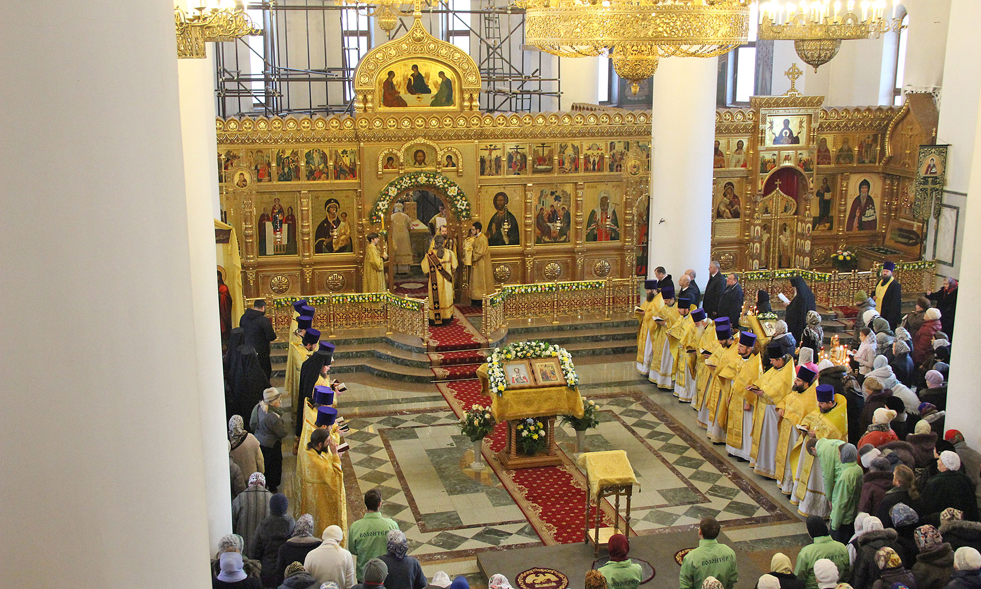 На праздничное богослужение в Кафедральный собор пришли православные верующие, в их числе представители органов исполнительной и законодательной власти. В этот день Митрополит Брянский и Севский принимал особые поздравления, так как 6 декабря отмечается день памяти Святого благоверного князя Александра Невского, небесного покровителя Владыки Александра.