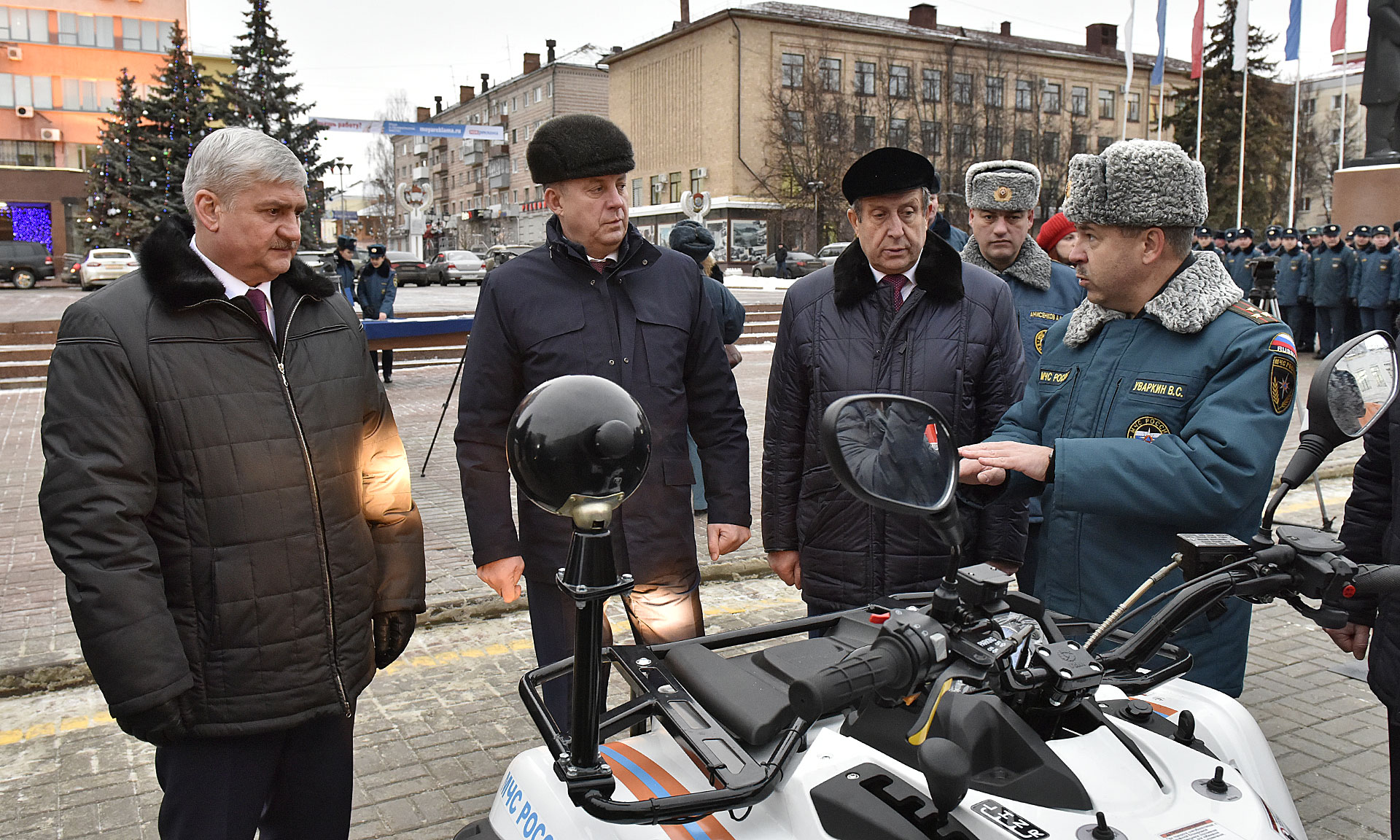 — Поздравляю вас с получением современной техники. Пожарно-спасательная служба — это сложная и многогранная деятельность по обеспечению безопасности граждан. Надеюсь, та техника, которую вы сегодня получили, будет работать на упреждение. Успехов вам! С наступающим Новым годом! Надеюсь, что новогодние праздники пройдут в штатном режиме.