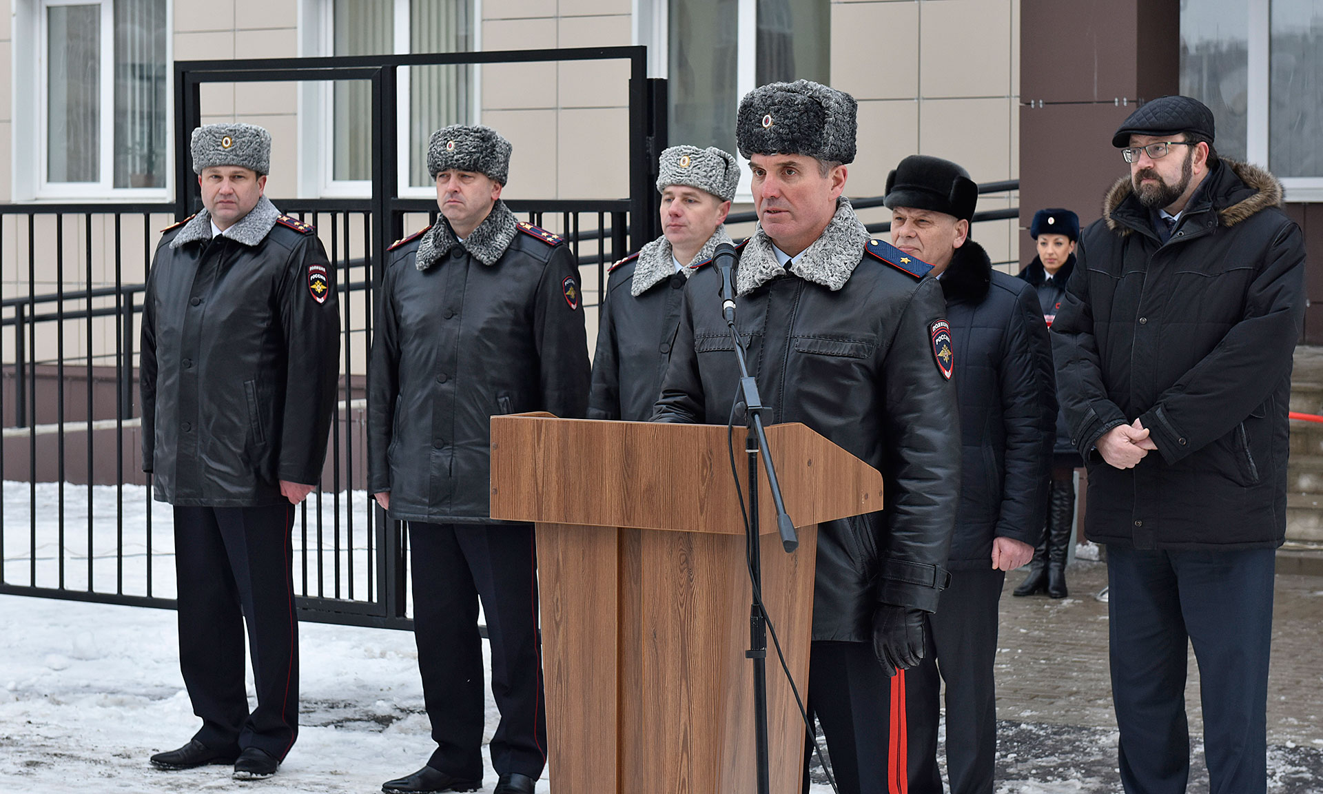 От себя лично и от имени главного федерального инспектора по Брянской области Леонида Соломатина с новосельем полицейских поздравил Михаил Калашников. Он подчеркнул, что «в этом здании вы будете служить верой и правдой, закону и нашему Отечеству».