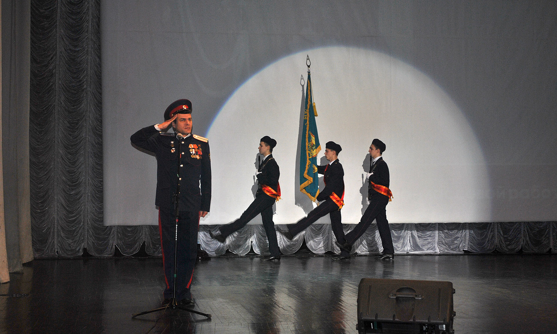 После выноса знамени общественного Движения юных патриотов, заместитель начальника областного штаба ДЮП Михаил Свинцов открыл месячник оборонно-массовой работы. С приветствием к юнармейцам обратились почетные гости, которые поздравили их с открытием месячника, пожелали успехов в учебе и юнармейской подготовке. Порадовали собравшихся ярким выступлением творческие коллективы областного ДДЮТ им. Ю. А. Гагарина.
