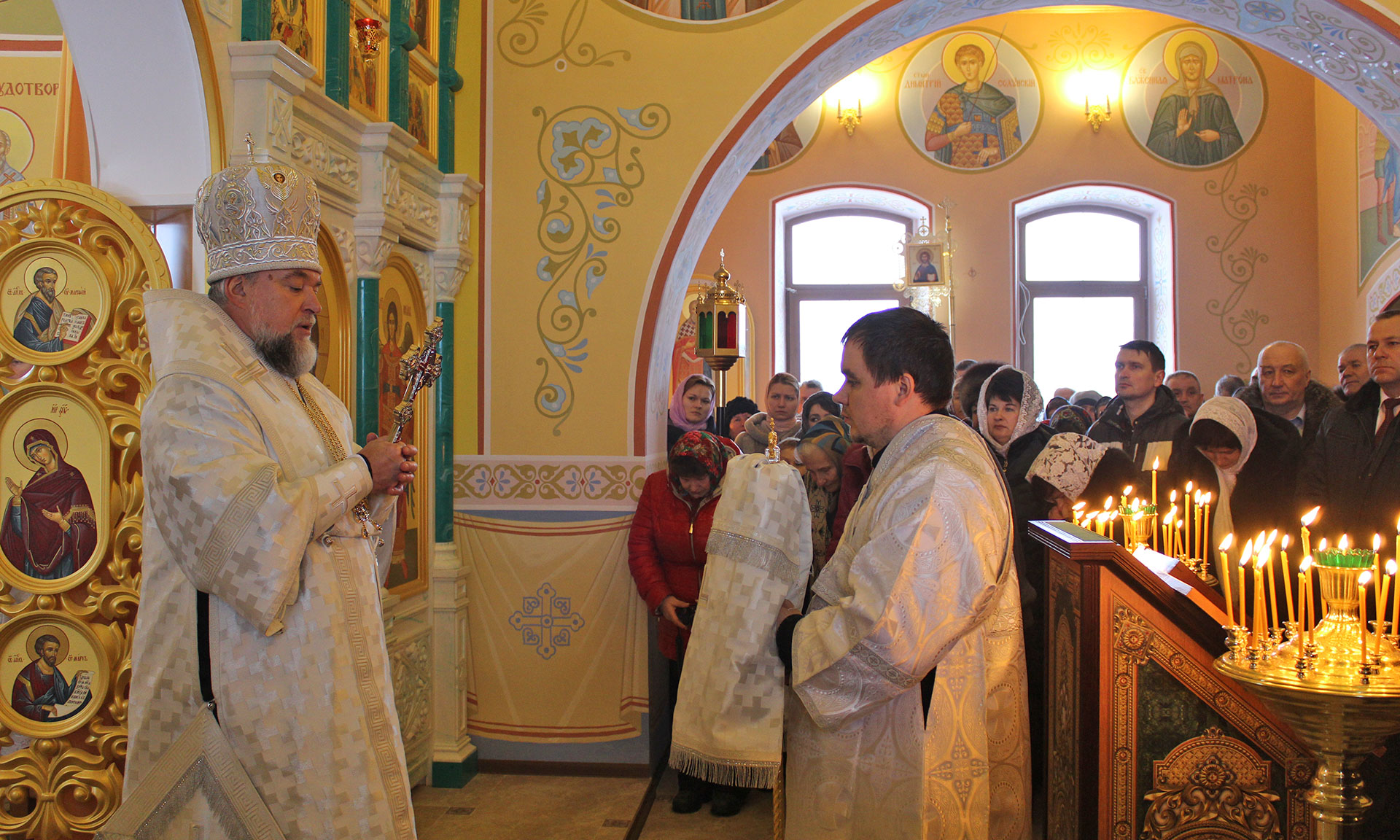 Чин освящения нововосстановленного храма в честь преподобного Андрея Критского совершил епископ Клинцовский и Трубчевский Владимир, затем он провел божественную литургию.