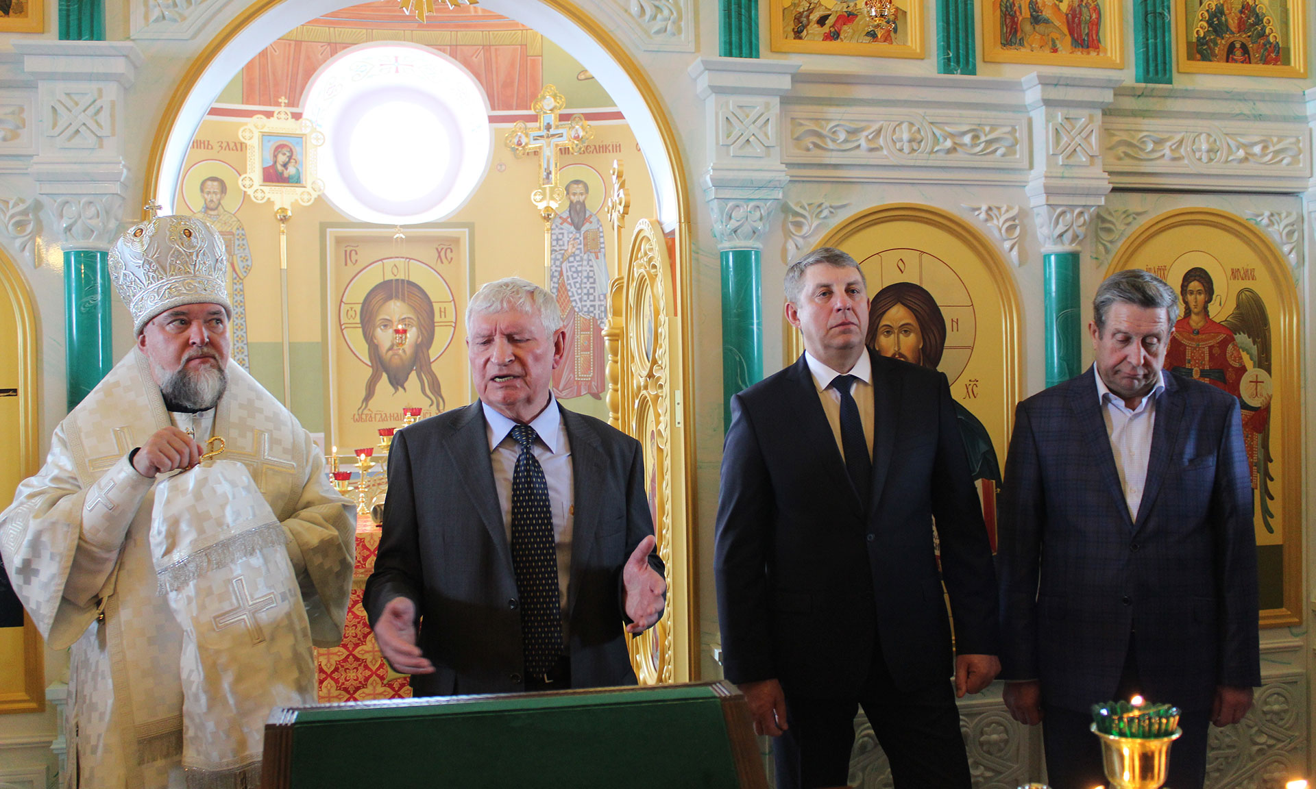 — Сегодня действительно большой праздник, — сказал Владимир Попков. — Все великие и знаковые события создают люди, и Георгий Константинович — тот человек, который делает добро не по принуждению, а по воле сердца, что придает ему силу, энергию. Во все времена на ратные и трудовые подвиги наш народ поднимала и воодушевляла православная вера, она должна объединить всех нас и сейчас. Вера тогда будет сильна, когда рядом с нами в храмах будут стоять подрастающие поколения. Низкий поклон, Георгию Константиновичу за то, что при жизни он оставил большой след на этой земле. Этому примеру должны последовать многие».