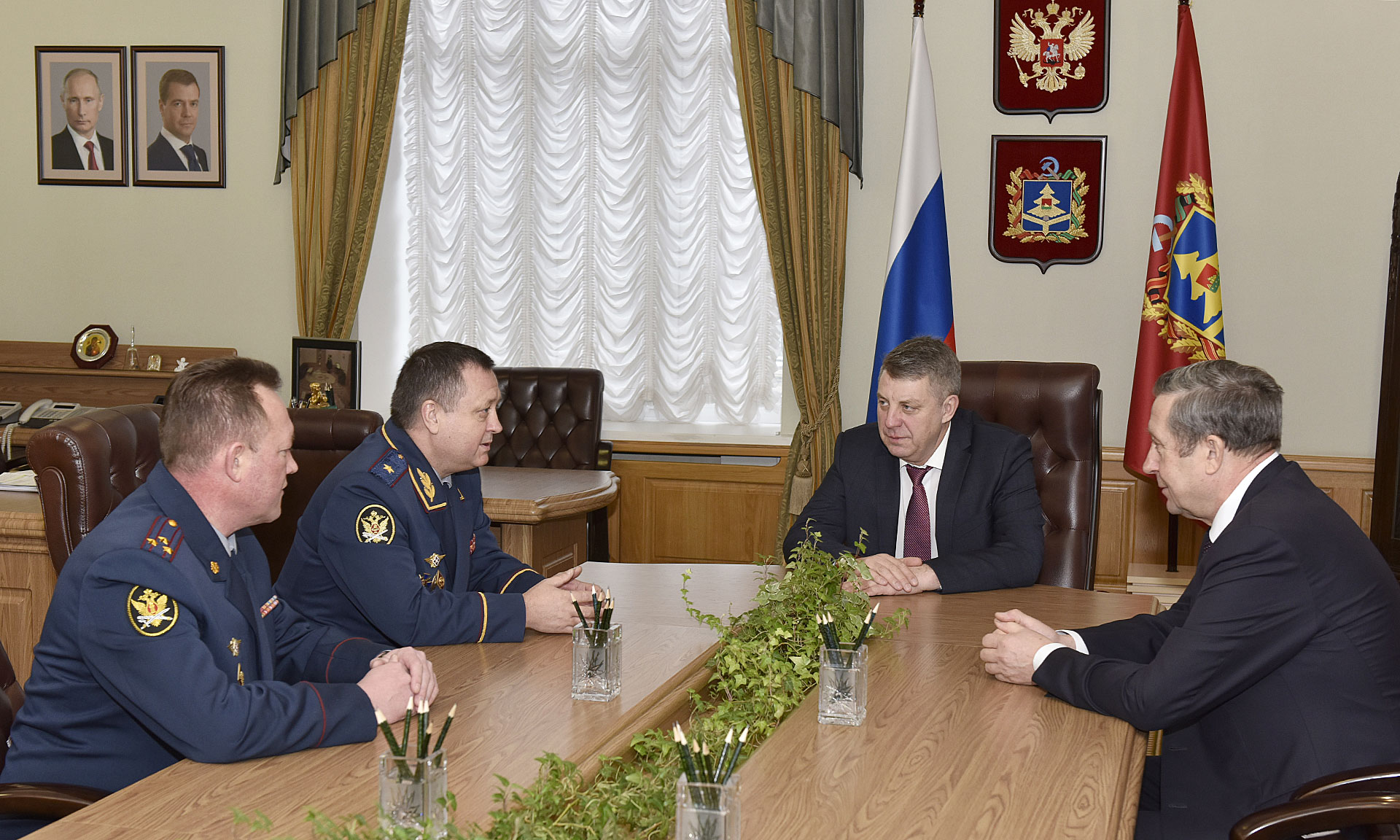 10 февраля состоялась рабочая встреча Губернатора Брянской области Александра Богомаза с начальником управления кадров ФСИН России генерал-майором внутренней службы Валерием Баланом. Он представил главе региона нового начальника УФСИН России по Брянской области Сергея Поршина.
